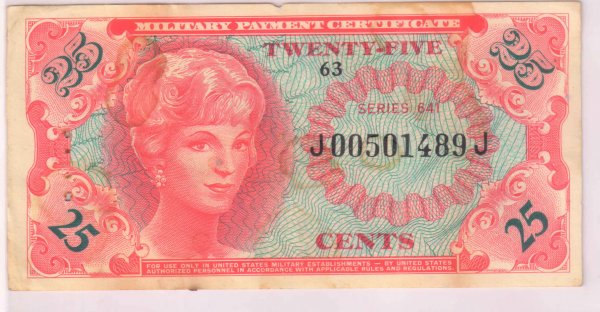 USA military , 25 cents series 641 ,used currency note