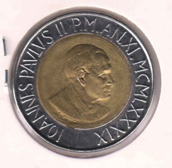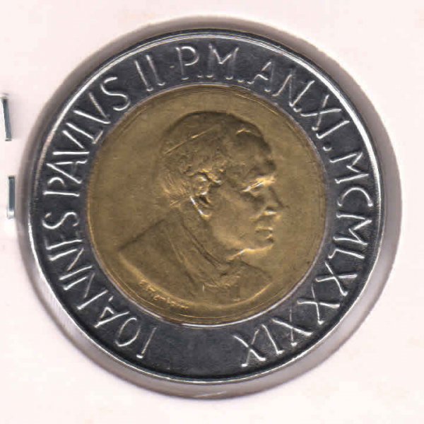 Vatican 500 lire ” Pope” bimetal coin V6
