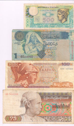 World – 4 different used currency notes