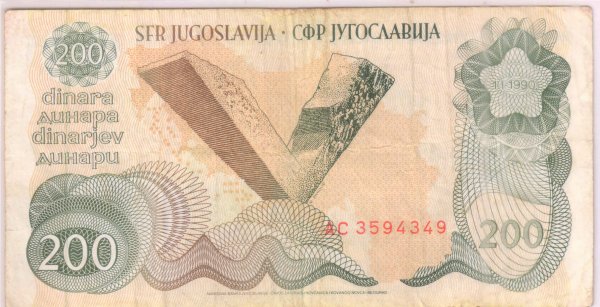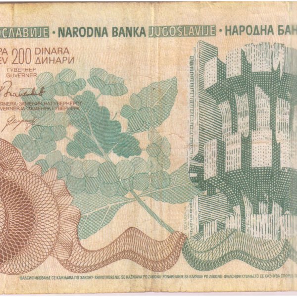 Yugoslavia 200 dinara 1990 vf currency note quantity
