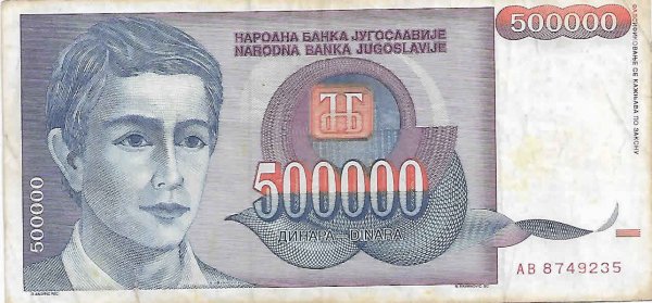 Yugoslavia – 500000 d 1993 , used currency note