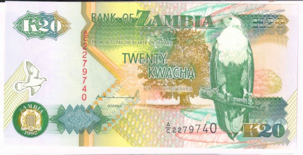 Zambia – 20 kwacha 1992 unc currency note