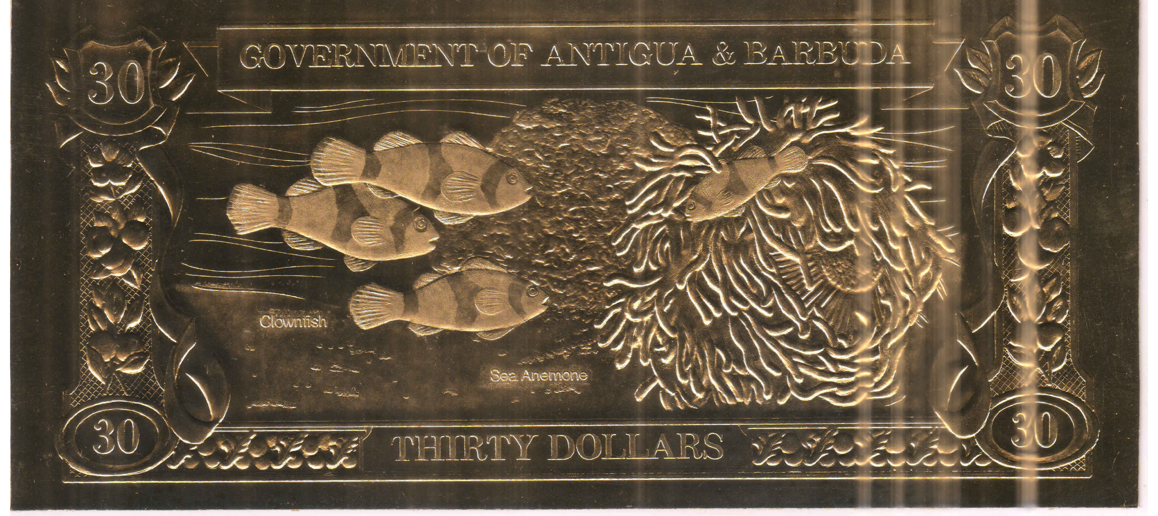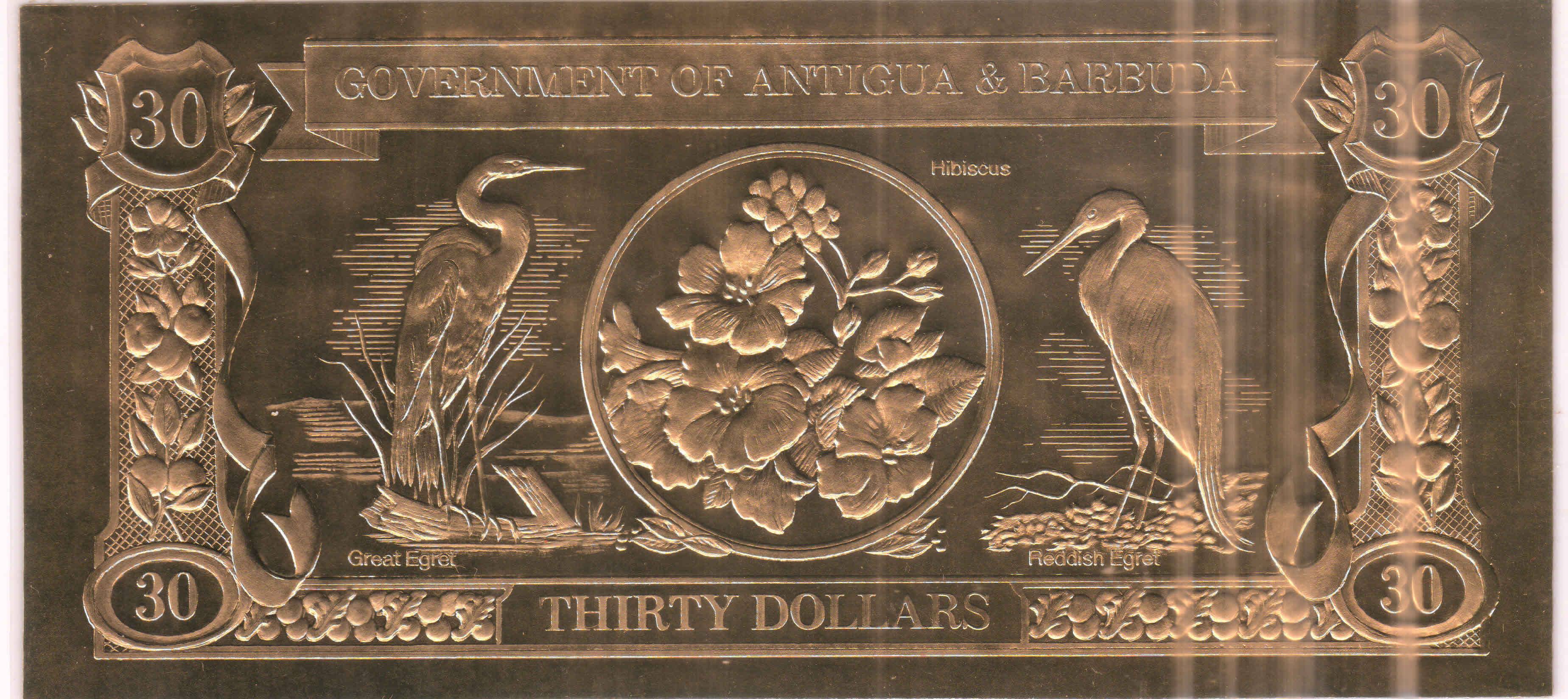 Antigua and Barbuda – 30 dollars 30 INDEPENDENCE NOVEMBER 1981 1981 gold foil currency note