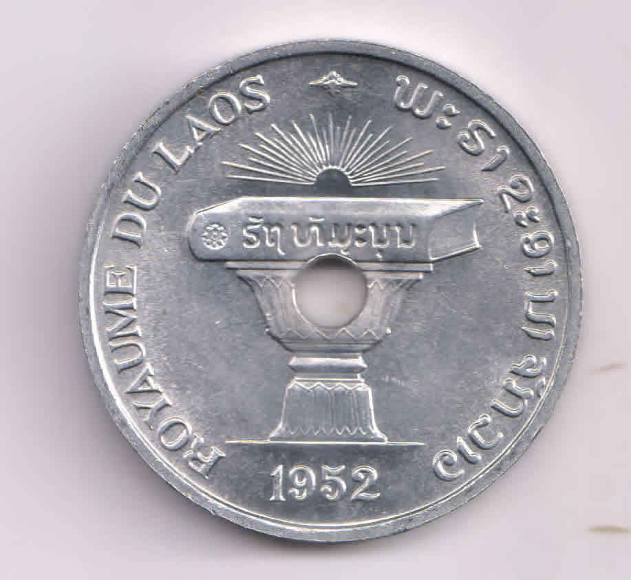 French Indo China – 1/4 cent 1942 – 44 zinc holed coin