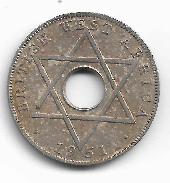 British West Africa – 1/2 Penny G VI 1946 , Km 18 , holed coin