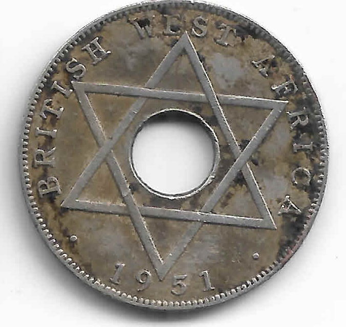 British West Africa – 1/2 Penny 1937H , Km 18 , holed coin